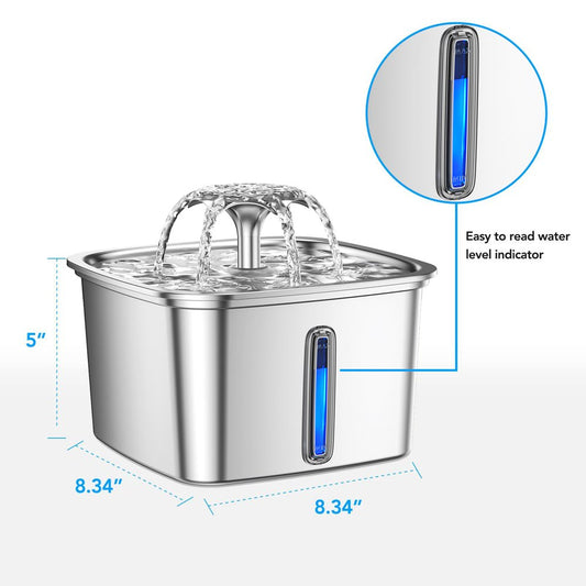 95Oz/2.8L Pet Fountain, Stainless Steel Cat Dog Water Fountain Dispenser