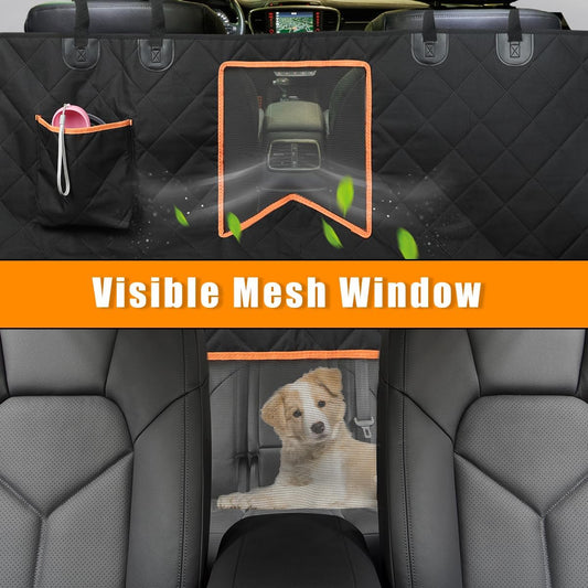Dog Car Seat Cover for Back Seat, 100% Waterproof Dog Car Hammock with Mesh Window, Anti-Scratch Nonslip Durable Soft Pet Dog Seat Cover for Cars Trucks and SUV