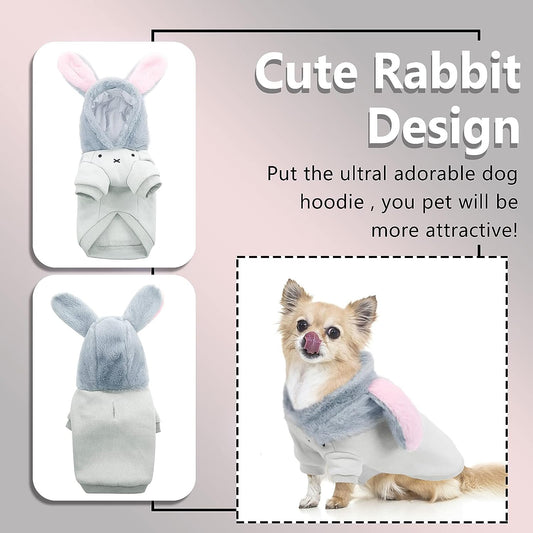 Bunny Dog Costume, Rabbit Shape Dog Hoodie with Ears, Soft Dog Sweatshirt Hooded Outfits for Halloween Christmas Easter Party, Puppy Cat Warm Winter Pullover Pet Clothes for Small Medium Dog